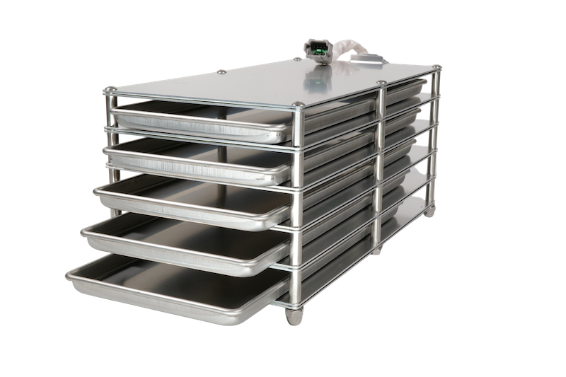 Any of these interchangeable shelf stacks provides you with a high-capacity and space-saving solution for your freeze drying needs. These stacks are easily interchangeable with one plug outlet at the back of the tray assembly. See our YouTube video how easy it is to change it.